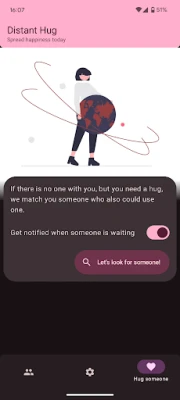 This is a social app where you can hug your friends by putting your phone to your chest. If you hug someone, the hugged person feels your heartbeat throuth the phone.